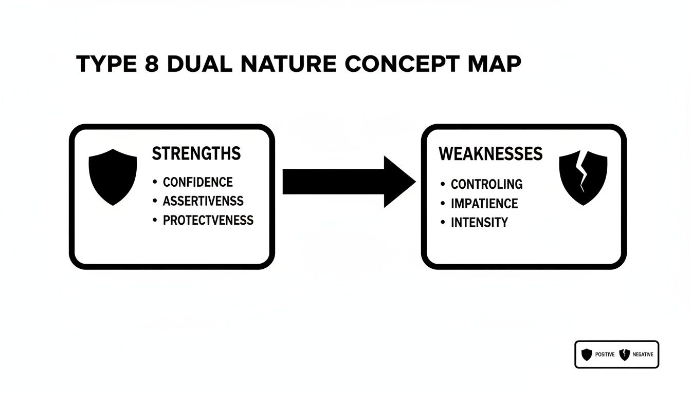 Every powerful force has a flip side, and the Enneagram 8 is no exception. Think of a brilliant CEO who can either steer a company to legendary success or run it straight into the ground. That’s the Eight in a nutshell. Their greatest assets can become their most destructive liabilities if they aren't paying attention.