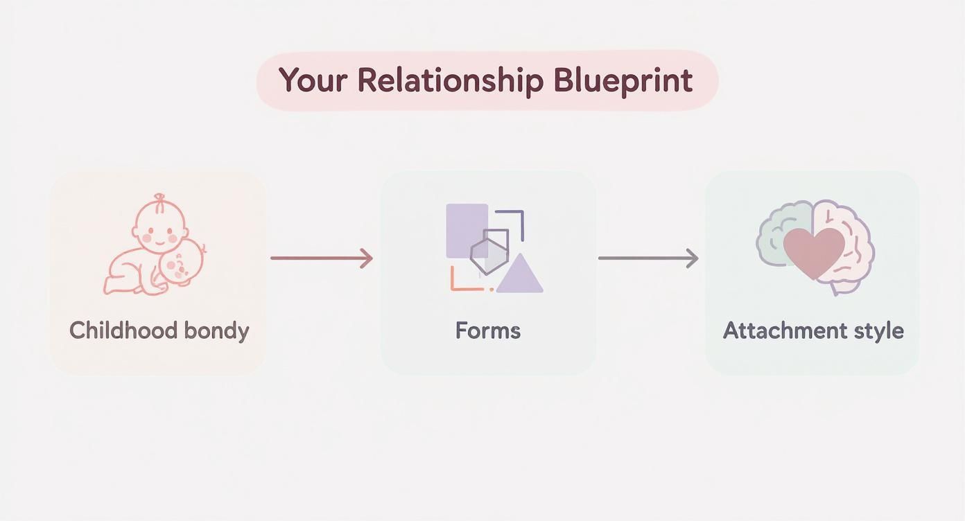 This concept is the heart and soul of attachment theory, first explored by psychologist John Bowlby. He realized that our earliest bonds don't just fade away. They create a powerful "internal working model" that acts as a blueprint for all our future partnerships.
