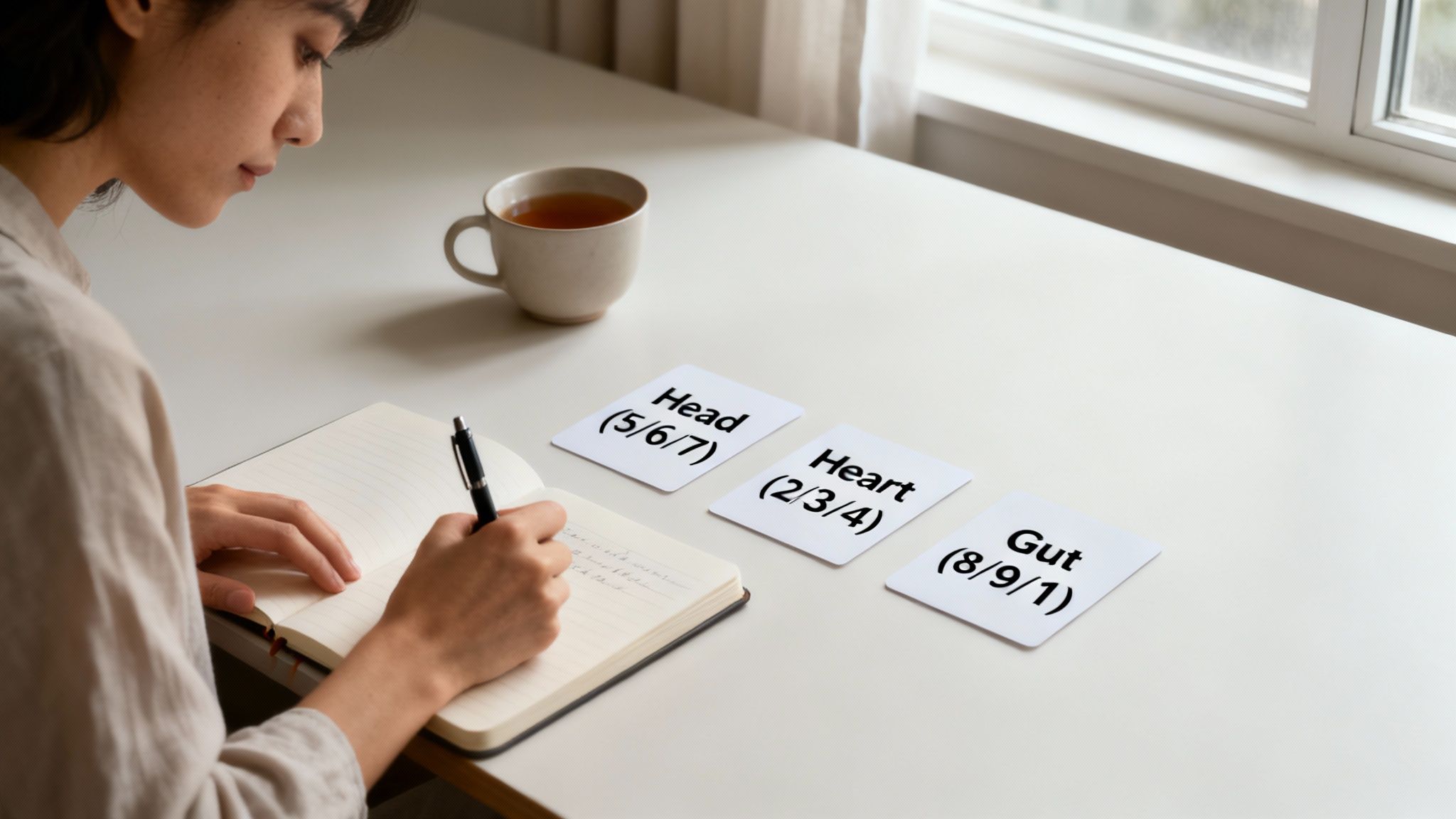This process of self-inquiry is how you piece together the full code of your personality. And while this method homes in on your Tritype, it's also incredibly helpful to see how your core type is colored by its neighbors. You can dive deeper into that dynamic in our detailed guide to the Enneagram wings test . By combining these tools, you can build a remarkably complete picture of your inner world, turning a simple number into a true journey of discovery.