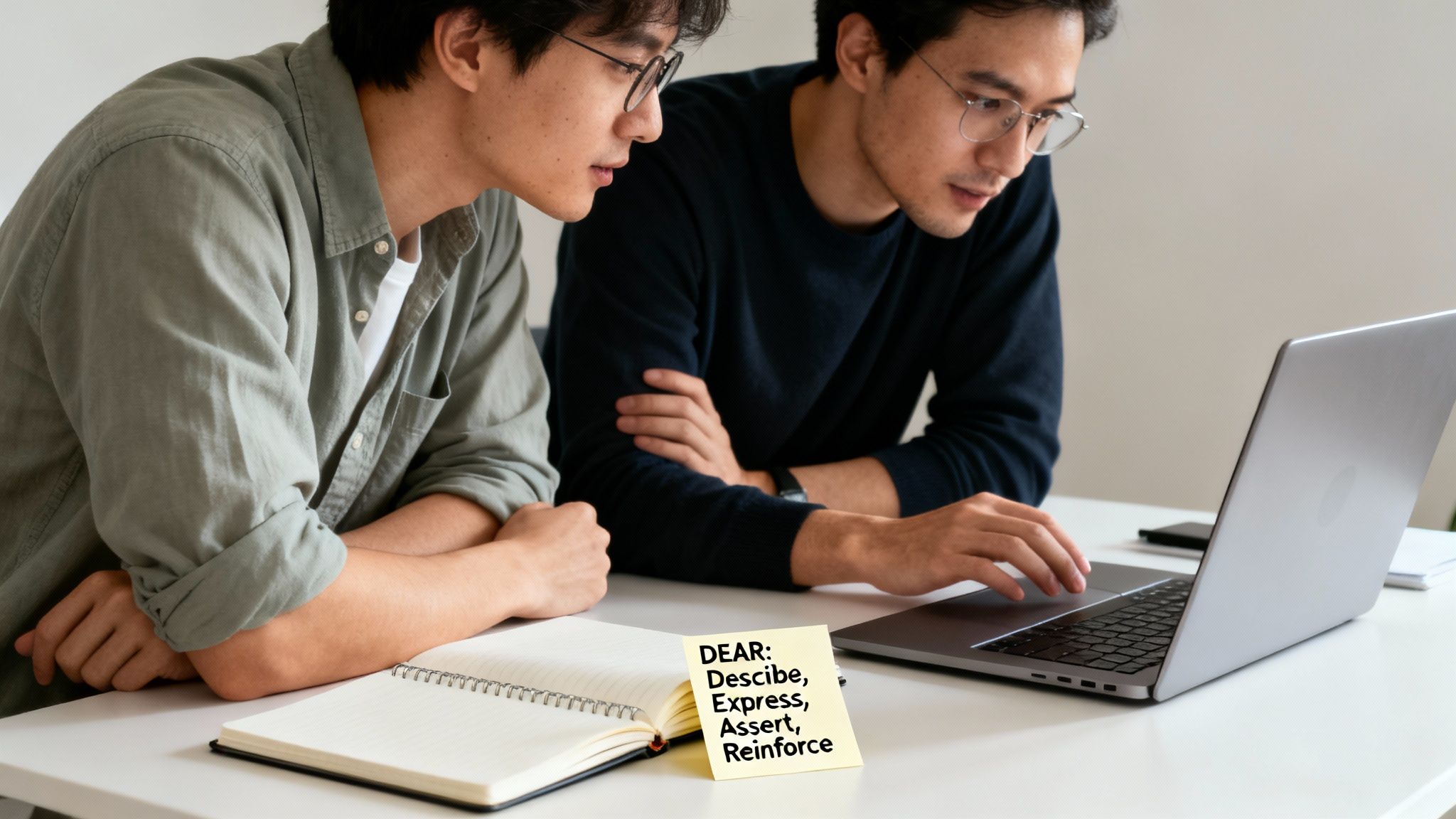 When the pressure is on, it's so easy for a simple disagreement to turn into a full-blown argument. The DEAR framework is a lifesaver here. It’s a simple, memorable structure that keeps tough conversations from going off the rails by focusing on the issue, not the emotion.