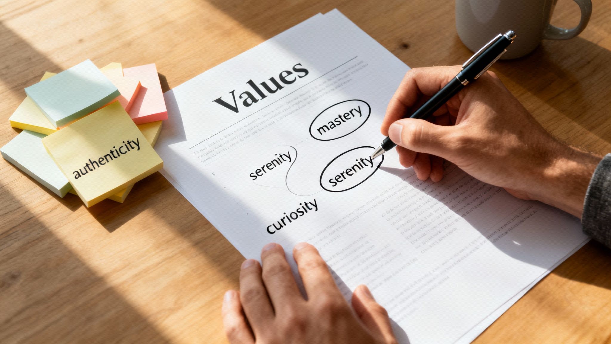 The first step is simply recognizing that feeling adrift is a symptom of an undefined compass. Getting clear on what matters most isn't just a nice idea—it's the key to building a life that feels like your own.