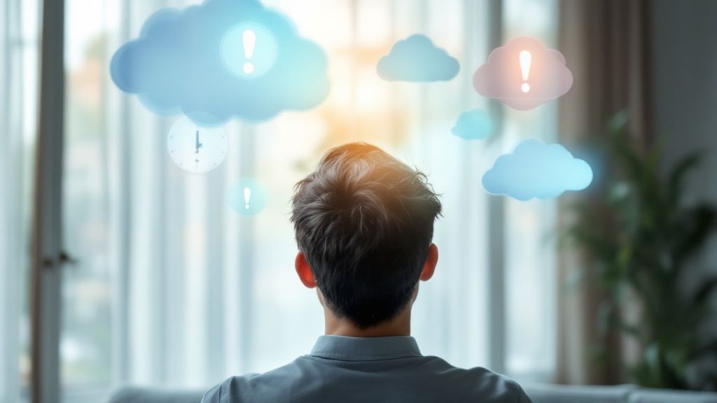 These mental shortcuts feel efficient, but they usually lead you straight to a dead end of anxiety, self-doubt, and frustration. Recognizing them is the first real step toward taking back the wheel. Often, these thoughts are tangled up with bigger stories we believe about ourselves, which is why learning how to overcome limiting beliefs is such a game-changer here.
