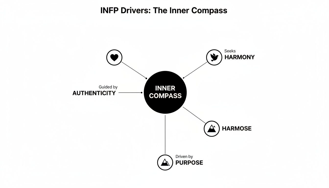 Think of it like an internal compass that doesn't point north, but instead swings relentlessly toward their core values. This isn't just a flowery metaphor; it's the fundamental operating system for an INFP. Every big decision gets filtered through one simple, powerful question: "Does this feel true to who I really am?"