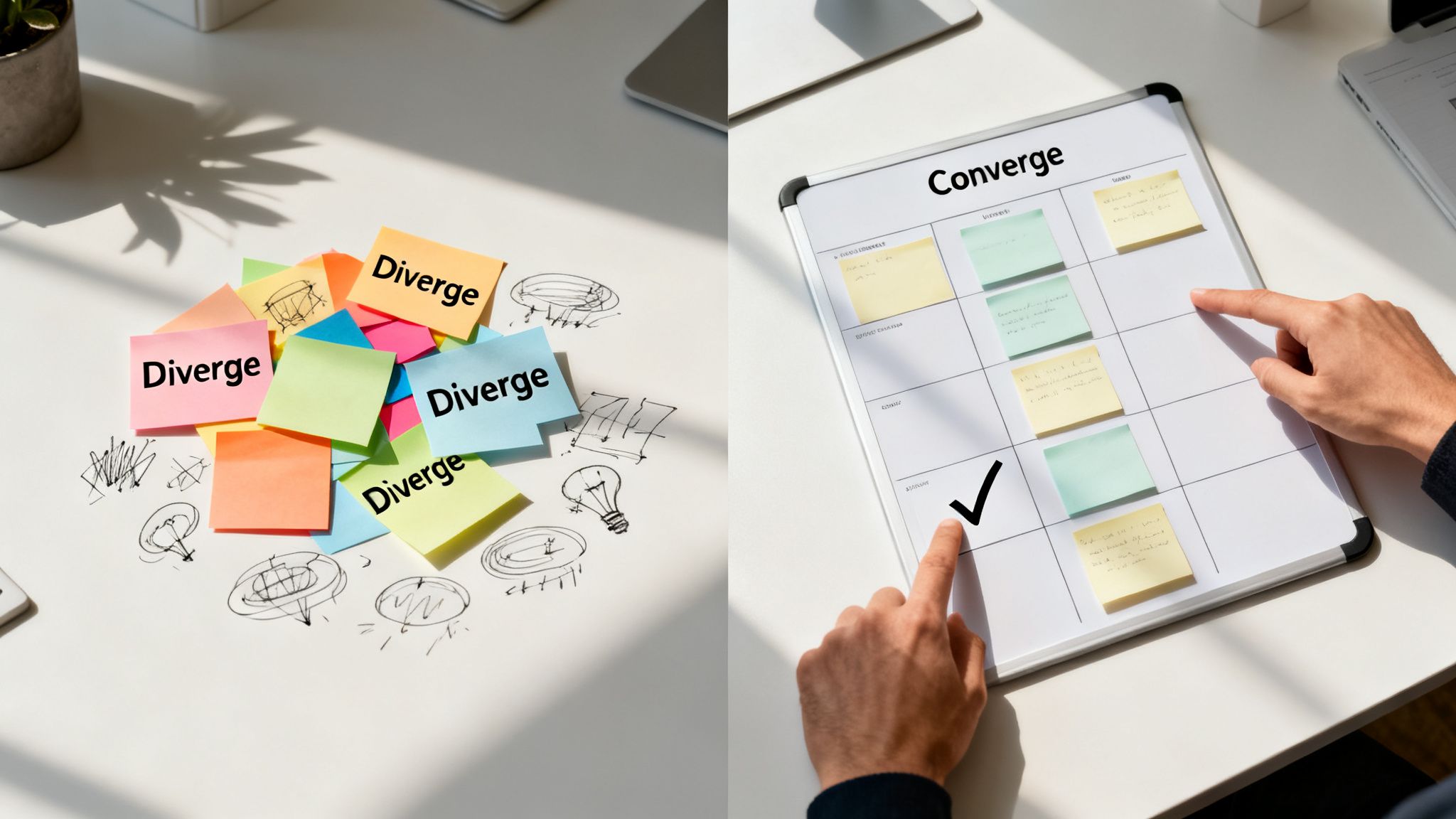 Stop your brainstorming sessions from turning into a chaotic free-for-all or a premature shutdown of good ideas. This exercise brings elegant structure to creative chaos by separating the problem-solving process into two distinct phases: divergent thinking (generating a wide array of ideas) and convergent thinking (narrowing down and selecting the best solution). The secret sauce is leveraging team members' Enneagram Types and Wings to lead the phase where they naturally shine.