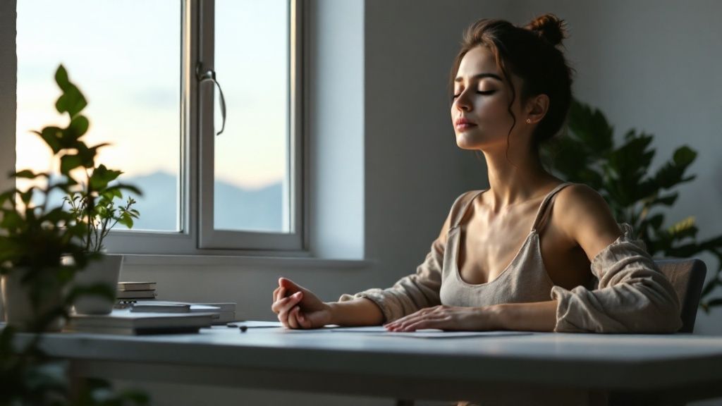 PMR is one of the most direct workplace stress management techniques because it tackles the physical symptoms head-on. By consciously releasing the tension you didn't even know you were holding from that last-minute project deadline, you send a powerful signal to your brain that the danger has passed. It’s a full-body exhale that melts away the fight-or-flight response.